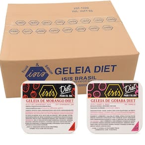 Na caixa Contém: 72 Un de Geleia de Goiaba Diet Isis 10g cada 72 Un de Geleia de Morango Diet Isis 10g cada Total 144 un.