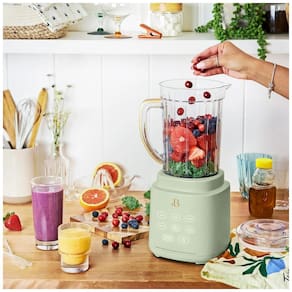 O Liquidificador PowerExact Beautiful possui motor de 700W que processa ingredientes resistentes como gelo e vegetais congelados com eficiência. A tecnologia PrecisionSense ajusta automaticamente velocidade e potência conforme o tipo de ingrediente para resultados consistentes em misturas de smoothies, salsas e sopas. Equipado com jarra de Tritan livre de BPA de 1,5L e copo individual de 590mL com tampa No Drippy Sippy patenteada, oferece versatilidade para preparos em bancada ou portáteis.?