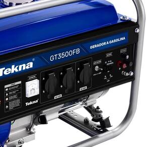 Gerador de Energia à Gasolina 6,5HP 3,1KVA 4 Tempos Bivolt GT3500FB TEKNAVANTAGENS: Com quadro reforçado Alerta de Nível de Óleo Carregador de Bateria Voltímetro AVRINFORMAÇÕES TÉCNICA: Tipo do Motor: 4 Tempos Potência Máxima do Motor: 6,5 HP Cilindros: Monocilíndrico Cilindrada: 196 cc Combustível: Gasolina Capacidade de Óleo: 0,6 L Gasolina Capacidade do Tanque: 15 L Tipo de Óleo / Cap.: 10W30 Potência Nominal: 2800 W Frequencia: 60 Hz Fases: Monofásico Nível de Ruído (7m) 67 dB Alerta Nível de Óleo: Sim Tensão de Saída: Bivolt 115 V | 230 V Regulador de Tensão: AVR Seletor de Tensão: Sim Carregador de Bateria: Sim (12V; 8,3A) Saídas: 2 x 115 V | 1 x 230 V 7898439061203 Voltímetro: Sim Autonomia (50% carga): 12 h Sistema de Partida: Manual Retrátil Potência Máxima: 3100 WINFORMAÇÕES LOGÍSTICAS: Peso Líquido: 43 KG Peso Bruto: 47 KG Dimensões Envio: 605 x 445 x 455 MM Garantia: 3 meses* Imagens meramente ilustrativas.