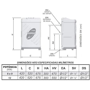 Ideal para uso tanto comercial quanto residencial, o gerador deve ser instalado na parte externa do ambiente de sauna, ficando o mais próximo possível da parede. É necessário um quadro de comando analógico ou digital para o seu funcionamento e o gerador acompanha 4 metros de cabo para instalação e conexão com o quadro.