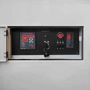 Composto de carenagem silenciada, construída em chapas de aço, com tratamento interno acústico, que proporcionam baixos níveis de emissões sonoras, além disso, conta com portas laterais que facilitam o acesso para realização das manutenções periódicas.