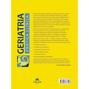 A segunda edição do “Geriatria: prática clínica” é apresentada com 55 capítulos distribuídos adequadamente em 7 seções. Traz ainda um completo apêndice com as escalas práticas para avaliação geriátrica do dia a dia. Os principais problemas do cotidiano na prática clínica em Geriatria foram discutidos na obra. Os assuntos foram cuidadosamente escolhidos baseados em importância e aplicabilidade clínica: abordam desde a avaliação geriátrica ampla, passando por multimorbidades, atividade física e rastreamento, até questões como neoplasias, hipertensão, dislipidemias, asma, pneumonia, osteoporose, anemia, sexualidade e sono. É realmente um material completo para acompanhar o cotidiano do médico geriatra.