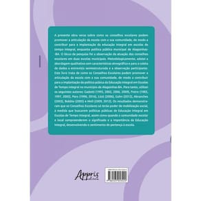A presente obra versa sobre como os conselhos escolares podem promover a articulação da escola com a sua comunidade, de modo a contribuir para a implantação da educação integral em escolas de tempo integral, enquanto política pública municipal de Alagoinhas-BA. O lócus da pesquisa foi a observação da atuação dos conselhos escolares em duas escolas municipais. Metodologicamente, adotei a abordagem qualitativa com características etnográ?ca e para a coleta de dados a entrevista semiestruturada e a observação participante. Este livro trata de como os Conselhos Escolares podem promover a articulação da escola com a sua comunidade, de modo a contribuir para a implantação da política púbica da Educação Integral em Escolas de Tempo Integral no município de Alagoinhas-BA. Para tanto, utilizei os seguintes autores: Gadotti (1995, 2002, 2006, 2009), Freire (1983, 1997, 2002), Paro (1996, 2016), Lück (2006), Gohn (2012), Abranches (2003), Bobbio (2005) e Moll (2009, 2012). Os resultados demonstra+ ram que os Conselhos Escolares só terão poder de mobilização social, à medida que buscarem políticas públicas de Educação Integral em Escolas de Tempo Integral, assim como quando a comunidade escolar e local compreenderem o signi?cado e a importância da Educação Integral, desenvolvendo o sentimento de pertença à escola.
