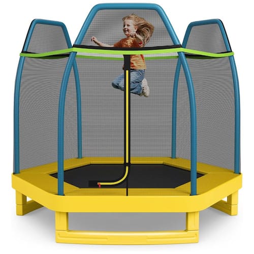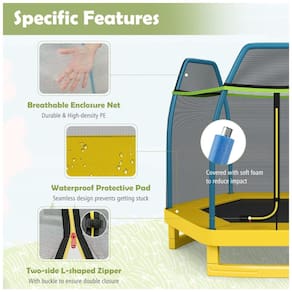Zíper de dois lados com design de fivela O trampolim para crianças está equipado com zíper em forma de L de dois lados com fivela para garantir o fechamento duplo. Existem 36 cordas fortes para maior ressalto, maior suporte de carga e maior tempo de uso. Além disso, o tapete de salto de alta qualidade é resistente a rasgos, proporcionando proteção segura e forte ressalto. Max Load 100 kg O trampolim infantil Giantex é construído com tecnologia de galvanização a quente, garantindo uma experiência de salto estável e segura. A base em forma de U alargada e curvada, com tubo de aço galvanizado também no interior, é mais estável e resistente para aumentar a estabilidade e evitar que seus filhos tombem. Construção robusta e estável O trampolim infantil para crianças é construído por tubo de aço galvanizado a quente no interior, garantindo uma experiência de salto estável e segura. Juntamente com a base em forma de U alargada e curvada, o trampolim é mais estável e robusto e evita que os seus filhos tombe. Em conformidade com a especificação de segurança ASTM, sempre colocamos a segurança das crianças em primeiro lugar. Rede de gabinete de segurança e capa de almofada sem costura A rede de gabinete de alta qualidade é feita de PE durável e de alta densidade. Ele é instalado do lado de fora para fornecer maior área de salto para as crianças
