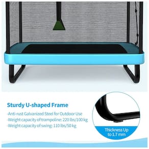 de usar a segurança das crianças é nossa prioridade. Com uma rede de segurança com zíper suave e fivelas duplas, almofada de espuma macia sem costura e tubos superiores acolchoados de espuma, este trampolim de alta qualidade mantém seu filho enquanto deixa seu filho se divertir. Por exemplo, o design sem lacunas evita lesões acidentais nas mãos ou nos pés. Balanço e removível Este trampolim infantil é diferente dos outros porque possui um balanço interno para que seu filho possa balançar e pular enquanto isso. E as cordas em ambos os lados são convenientes para o seu filho segurar, o que aumenta a sensação de segurança. O balanço também pode ser removido para maior comodidade. Construído para estabilidade Feito de aço galvanizado resistente, este trampolim infantil é antiferrugem e durável para uso interno e externo. Ao mesmo tempo, a estrutura em forma de U e o tapete antiderrapante na parte inferior garantem sua forte estabilidade. Portanto, é capaz de segurar seu filho facilmente 100 kg. Excelente desempenho de salto Para oferecer uma experiência de salto segura e saltitante, este trampolim ao ar livre apresenta um tapete de salto de alta densidade com 40 molas galvanizadas. Ao saltar, não só promove o crescimento ósseo, mas também consome a energia do seu filho para um sono melhor Marca: Não Informado
