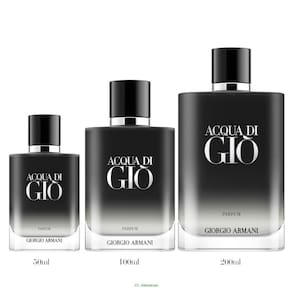 Cada uma das fragrâncias acqua di gi transmite sua própria faceta distinta de frescor marinho. Acqua di gi parfum traz um frescor extremo. Suas notas de topo combinam bergamota, gengibre e a intensidade das notas marinhas; suas notas de coração fundem baunilha de madagascar, alecrim e sálvia; e suas notas de fundo amadeiradas e vibrantes trazem essência de patchouli e incenso, criando uma sensação de mistério, com todos ingredientes de origem sustentável e natural. Essa fragrância fresca e de longa duração captura as poderosas sensações da natureza. O novo frasco de acqua di gi parfum é uma afirmação elegante, tanto em seu marcante design, quanto por sua natureza sustentável. O frasco da fragrância é elaborado com uma silhueta elegante e masculina, com a assinatura de acqua di gi. Seu novo frasco aprimorado, traz um degradê preto fosco e gradual, precioso e masculino. Num contraste marcante, a base do frasco é transparente, capturando a essência aquática da fragrância. Para combinar com o vidro preto fosco, a tampa do frasco é em tom preto e marcada com elegantes letras prateadas que adornam a superfície preta do frasco, para evocar um novo e opulento aspecto de acqua di gi.