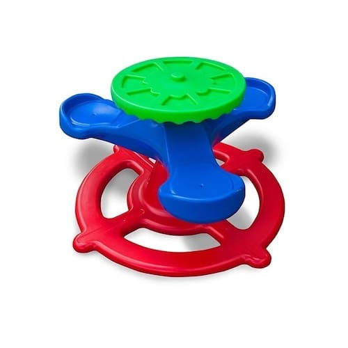 Conceito do antigo gira-gira de metal, não temático, sem formas de bichos, totalmente em plástico.