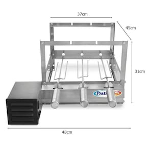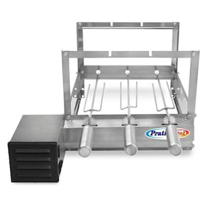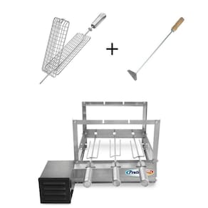 Acompanha 03 Espetos Tridente, 01 Espeto Grelha, 01 Espalhador Carvão e manual de montagem