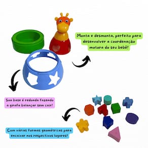 Apresentamos a encantadora GIRAFA DIDÁTICA, um brinquedo que promete horas de diversão e aprendizado para as crianças! Com um design colorido e divertido, essa torre apresenta uma adorável torre girafa que balança!