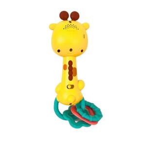 Girafa Musical Com Luz Som E Mordedor Macio 16994 Buba Os pequenos vão descobrir diferentes ritmos e sons de animais com a Girafa Musical da Buba. Sensível ao movimento, é só chacoalhar para criar o próprio ritmo. E para completar a diversão, possui luz no focinho e mordedores com texturas. Um chocalho como você nunca viu Desperta os sentidos; visão, tato, audição e emocional.