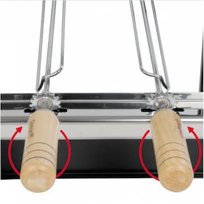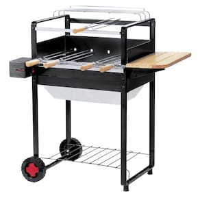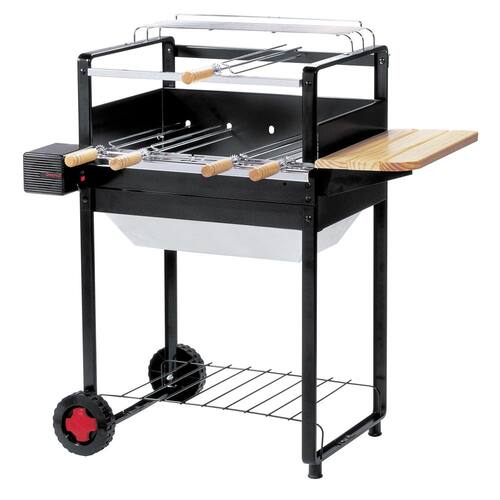 A Churrasqueira Giragrill Garden 2200, conta com 5 espetos giratórios em aço cromado com cabos de madeira marfim,acionados por motor elétrico bivolt, acabamento em aço com pintura eletrostática, peças cromandas e calha em inox, 1 mesas de serviço retrátil.