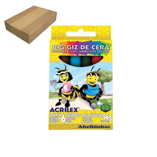 Giz De Cera Big Acrilex 56G 09106 6 Cores Com 12 Unidades O Giz de Cera Big Acrilex foi desenvolvido para trabalhos infantis, ajudando a criança no aprendizado da escrita e no desenvolvimento de sua coordenação motora. Ideal para uso na pré-escola e em trabalhos escolares diversos. Tem formato redondo, fabricado com ceras de qualidade, proporcionando traço e cobertura de grandes áreas sem esforço. Pacote com 12 unidades. Marca: Não Informado Ean: 7891153002910