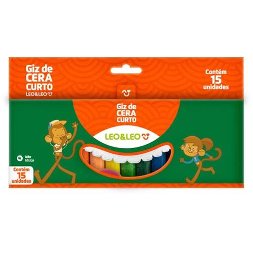 Giz de Cera Big Curto 15 Cores Leo e Leo tem formato redondo, núcleos vivas que facilitam o aprendizado e traço fino para contorno.
