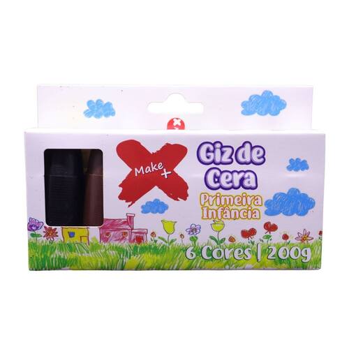 - Marca: MAKE+ - Modelo: Giz de Cera Primeira Infância - 6 Cores vivas e vibrantes - Ajuda no desenvolvimento da motricidade; - Formato anatômico que facilita a pega