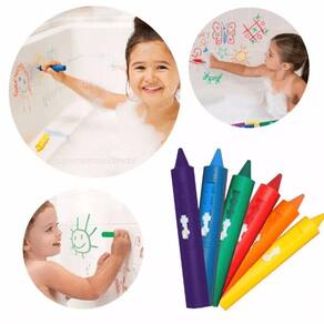 Lápis coloridos para desenhar nos azulejos enquanto tomam banho. Depois é só apagar uma esponja úmida que some tudo.