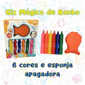 Com 6 giz coloridos, as crianças podem desenhar à vontade em azulejos e superfícies lisas durante o banho. E quando a brincadeira acabar É só usar a esponja em formato de peixinho para apagar tudinho e começar outra vez fácil de limpar, não mancha e é 100% lavável com água.