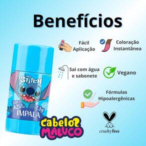 O Giz de Cabelo Stitch da Impala é a forma mais rápida, divertida e segura de transformar o visual infantil em segundos! Com aplicação simples e efeito imediato, ele colore os fios com um toque de criatividade ideal para o Dia do Cabelo Maluco, festas à fantasia, eventos escolares ou brincadeiras em casa.