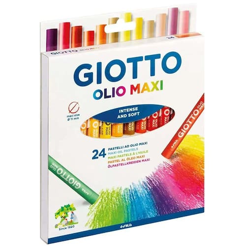 Pastéis de óleo embalados individualmente com 70 mm de comprimento e 11 mm de diâmetro. Cores ricas e altamente abrangentes que são fáceis de aplicar. Eles são maiores que os pastéis normais de óleo, por isso são cheios de cor.