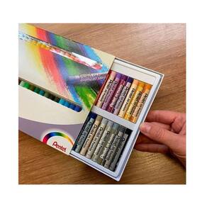 Giz pastel oleoso Pentel para desenhar com 25 cores. O giz pastel oleoso é ótimo para fazer esboços coloridos e trabalhos artísticos, principalmente em papéis de alta gramatura. Qualidade japonesa.