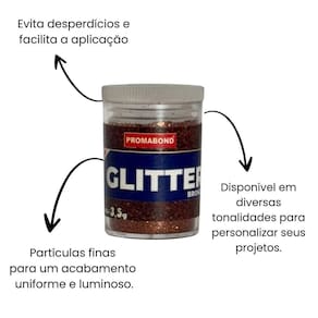 Com o Glitter Poliéster 3,5g, suas criações ganham um toque especial e um brilho incomparável Seja para decorar, realçar a beleza ou transformar projetos criativos, esse glitter é a escolha perfeita para quem ama destacar cada detalhe.