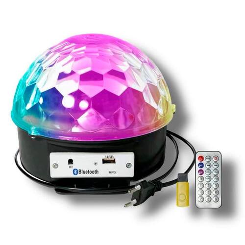 Globo de Espelho Balada Festa Iluminação Giratória Led Globo de luz giratório LED Mp3 USB Bluetooth ideal para baladas, festas e aniversários, com efeitos de luzes que transformam o ambiente. Fabricado em material plástico de alta qualidade, conta com 6 LEDs internos totalizando 18W, proporcionando excelente iluminação.