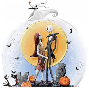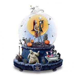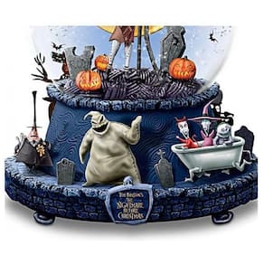 Funcionalidades: globo de neve com glitter, base rotativa, música do filme "The Nightmare Before Christmas"