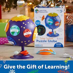 O espaço é o lugar para a diversão da aprendizagem pré-escolar! As crianças desenvolvem habilidades científicas práticas enquanto resolvem o quebra-cabeça 3D de outro mundo encontrado no Solar System Puzzle Globe, um brinquedo STEM prático para crianças da Learning Resources. Inspirado pelo nosso premiado Puzzle Globe, este divertido quebra-cabeça rotativo adiciona alguma decoração espacial à ação de jogo de quebra-cabeça - as crianças posicionam oito peças de quebra-cabeça de planeta fáceis de segurar que também introduzem os nomes e aparências de nossos vizinhos do sistema solar. Além de desenvolver as primeiras habilidades motoras finas e de pensamento crítico, este brinquedo STEM para crianças também está pronto para aventuras imaginativas graças às suas divertidas e amigáveis peças de astronauta e nave espacial - à medida que as crianças exploram o cosmos com seus novos amigos, não há como dizer o que eles vão descobrir! Quando o tempo do quebra-cabeça é feito para o dia, o Solar System Puzzle Globe também faz uma excelente decoração de espaço para os quartos - o astronauta e as constelações até brilham no escuro, aumentando a maravilha cósmica a este brinquedo educativo para crianças de 3 anos quando as luzes se apagam! Somos Recursos de Aprendizagem® e ajudamos pais e professores a construir gerações de crianças incríveis desde 1984. De ABCs e 123s a habilidades motoras finas e STEM, nossos brinquedos educacionais oferecem às crianças os blocos de construção de que precisam para ter sucesso na escola e desenvolver um amor ao longo da vida pela aprendizagem. Descubra inúmeras maneiras de aprender brincando com nossos produtos premiados, incluindo os vencedores do Brinquedo do Ano Tumble Trax®, Botley®, o Robô de Codificação e Coding Critters™.