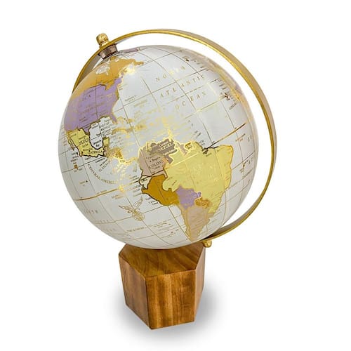 Apresentar mapa detalhado, padrões artísticos e texturas que adicionam charme e personalidade ao ambiente. Com um formato esférico e base de apoio, o globo pode ser exibido como peça central em mesas de centro, estantes ou mesas de escritório.