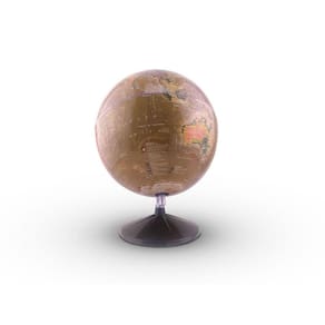 A arte do globo é baseada em imagens De satélite. Possui informações sobre Independência, de 1 republica, além De mapa de rotas de navegações Com breve histórico dos grandes