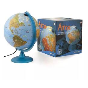Globo iluminado Arca 25 cm tem um mapa que apresenta os animais e símbolos de cada região do mundo, com ele as crianças aprendem brincando e durante o sono garante uma luz ambiente que não incomoda.