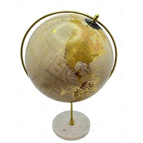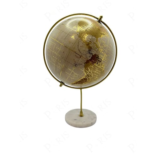 Cód: 15573-PL Globo Terrestre Decorativo em Metal e Mármore Dourado Material: Metal, Mármore e Plástico Cor: Dourado e Branco Dimensões: 34x23cm (AxL) Diâmetro Globo: Ø20cm