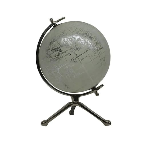 Globo Terrestre Decorativo em Metal Prata Cód: SRY0002