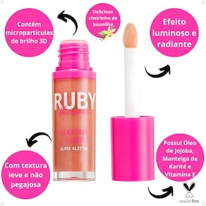 O gloss proporciona um efeito luminoso e radiante nos lábios, graças às suas micropartículas de brilho 3D, deixando um acabamento brilhante e sofisticado.