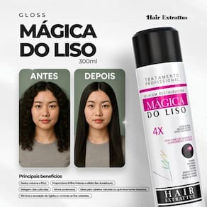 O Gloss Mágica do Liso Hair Extrattus foi especialmente desenvolvido para cabelos naturais ou quimicamente tratados que precisam de redução de volume, controle de frizz e um efeito liso duradouro. Sua fórmula poderosa contém ativos como vinagre, colágeno, sericina, cisteína, extrato de chia, óleo de linhaça e um blend exclusivo de ácidos que selam as cutículas e garantem fios disciplinados, macios e com brilho intenso. Esse tratamento promove uma selagem capilar restauradora, eliminando a sensação de rigidez e domando os fios rebeldes, deixando o cabelo progressivamente mais liso, alinhado e com toque sedoso. Ideal para quem busca um acabamento com efeito de salão no conforto de casa.