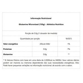 Glutamine Micronized (150g) - Padrão: único GLUTAMINE MICRONIZED (150g) - ATLHETICA NUTRITION Glutamine Micronized da Atlhetica Evolution Series é um módulo de L-glutamina para dieta enteral ou oral. A glutamina é descrita como sendo um cristal branco ou pó cristalino, sem odor ou com um leve odor característico e com um sabor levemente amargo. Assim como outros aminoácidos, a glutamina desempenha um papel vital no metabolismo da proteína, na recuperação muscular, no sistema imunológico e no sistema digestivo. BENEFÍCIOS:* Transporta o oxigênio ao músculo.* Auxilia na melhora do sistema imunológico.* Auxilia no crescimento muscular.* Apresenta alto grau de pureza.* Reduz a quebra de tecido muscular e estimula o crescimento dos músculos* Estimula a volumização da célula, o que encoraja o crescimento muscular* Ajuda na entrada de aminoácidos nas células musculares para melhorar a recuperação dos exercícios