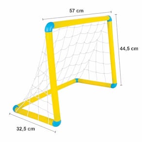 Contém: 4 tubos (49cm), 4 Tubos ( 36cm), 4 Tubos (25cm), 12 Cantoneiras Plásticas , 2 Redes e 1 Bola de Vinil.