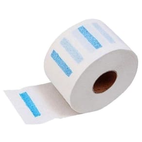 Segure a gola higiênica nas pontas e estique-a levemente, coloque ao redor do pescoço do cliente.