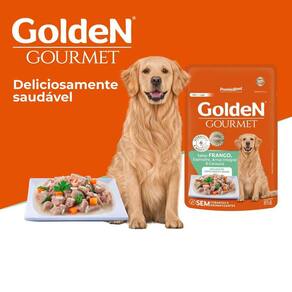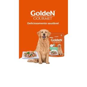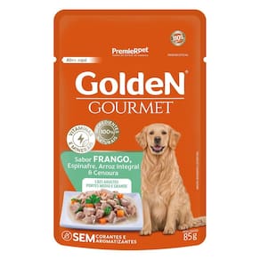 Golden gourmet caes adultos porte medio/grande frango 85g Golden gourmet cães adultos de portes médio e grande sabor frango, espinafre, arroz integral e cenoura é um alimento premium especial que faz parte da linha golden gourmet. Este produto é um alimento úmido completo indicado para cães adultos saudáveis de portes médio e grande. Feito com ingredientes 100% naturais, é balanceado e enriquecido com vitaminas e minerais. Possui um sabor excepcional e é naturalmente saudável, pois não contém corantes e aromatizantes artificiais, proporcionando uma refeição deliciosa
