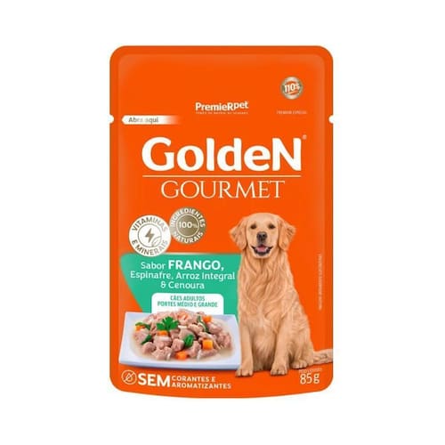 - Indicada para cães adultos de porte médio e grande;- Alimento Premium Especial que faz parte da linha GoldeN Gourmet;- Feito com ingredientes 100% naturais;- Balanceado e enriquecido com vitaminas e minerais;- Possui um sabor excepcional e é naturalmente saudável;- Não contém corantes e aromatizantes artificiais, proporcionando uma refeição deliciosa;- Disponível em embalagem de 85g.