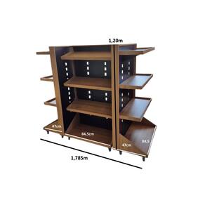 KIT 1 GÔNDOLA CENTRAL 120 MDF MADEIRADO 2 PONTAS 16 BANDEJAS