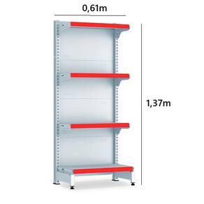 Prática e fácil de montar, com sistema de encaixe sem utilização de parafusos, possui bandejas reguláveis a cada 4,5 cm, pés com regulagem de altura, colunas duplas e tratamento especial da superfície.