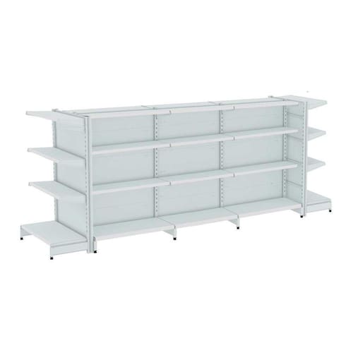 A Gôndola FIT 40 FARMA Centro é ideal para farmácia, supermercados, mercearias, lojas de utilidades, materiais de construção, agropecuárias e outros. Devido sua altura permite uma visão ampla central do comércio.