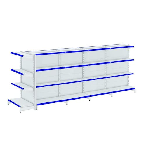 A Gôndola FIT 40 FARMA Centro é ideal para farmácia, supermercados, mercearias, lojas de utilidades, materiais de construção, agropecuárias e outros. Devido sua altura permite uma visão ampla central do comércio.
