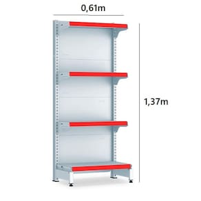 Prática e fácil de montar, com sistema de encaixe sem utilização de parafusos, possui bandejas reguláveis a cada 4,5 cm, pés com regulagem de altura, colunas duplas e tratamento especial da superfície.