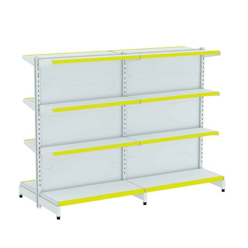 KIT GÔNDOLA CENTRO 137 FIT AMAPÁ 40/30 BRANCO PARA VÃO DE ATÉ 2 METROS 16 BANDEJAS PORTA ETIQUETA AMARELO