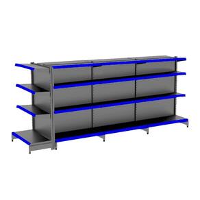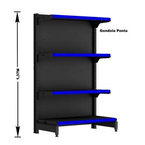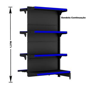 KIT GÔNDOLA CENTRO 137 FIT AMAPÁ 40/30 PRETO PARA VÃO DE ATÉ 3,50 METROS COM UMA PONTA 28 BANDEJAS PORTA ETIQUETA AZUL