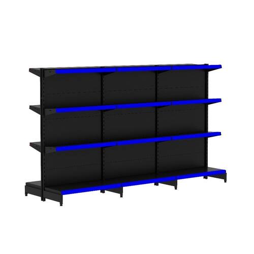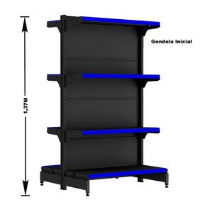 KIT GÔNDOLA CENTRO 137 FIT AMAPÁ 40/30 PRETO PARA VÃO DE ATÉ 3 METROS 24 BANDEJAS PORTA ETIQUETA AZUL