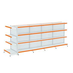 KIT GÔNDOLA CENTRO 137 FIT AMAPÁ 40/30 BRANCO PARA VÃO DE ATÉ 4,50 METROS COM UMA PONTA 36 BANDEJAS PORTA ETIQUETA LARANJA