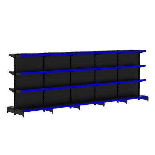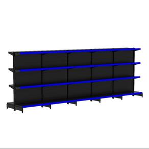 KIT GÔNDOLA CENTRO 137 FIT AMAPÁ 40/30 PRETO PARA VÃO DE ATÉ 4,90 METROS 40 BANDEJAS PORTA ETIQUETA AZUL