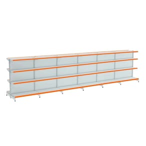 KIT GÔNDOLA CENTRO 137 FIT AMAPÁ 40/30 BRANCO PARA VÃO DE ATÉ 5,90 METROS 48 BANDEJAS PORTA ETIQUETA LARANJA